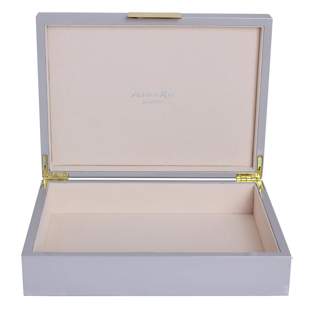This lovely chiffon storage box boasts a lustrous finish and a bright gold clasp with matching hinges. With a luxuriously soft suede interior, this piece is perfect for storing jewelry, watches, trinkets, and glasses.