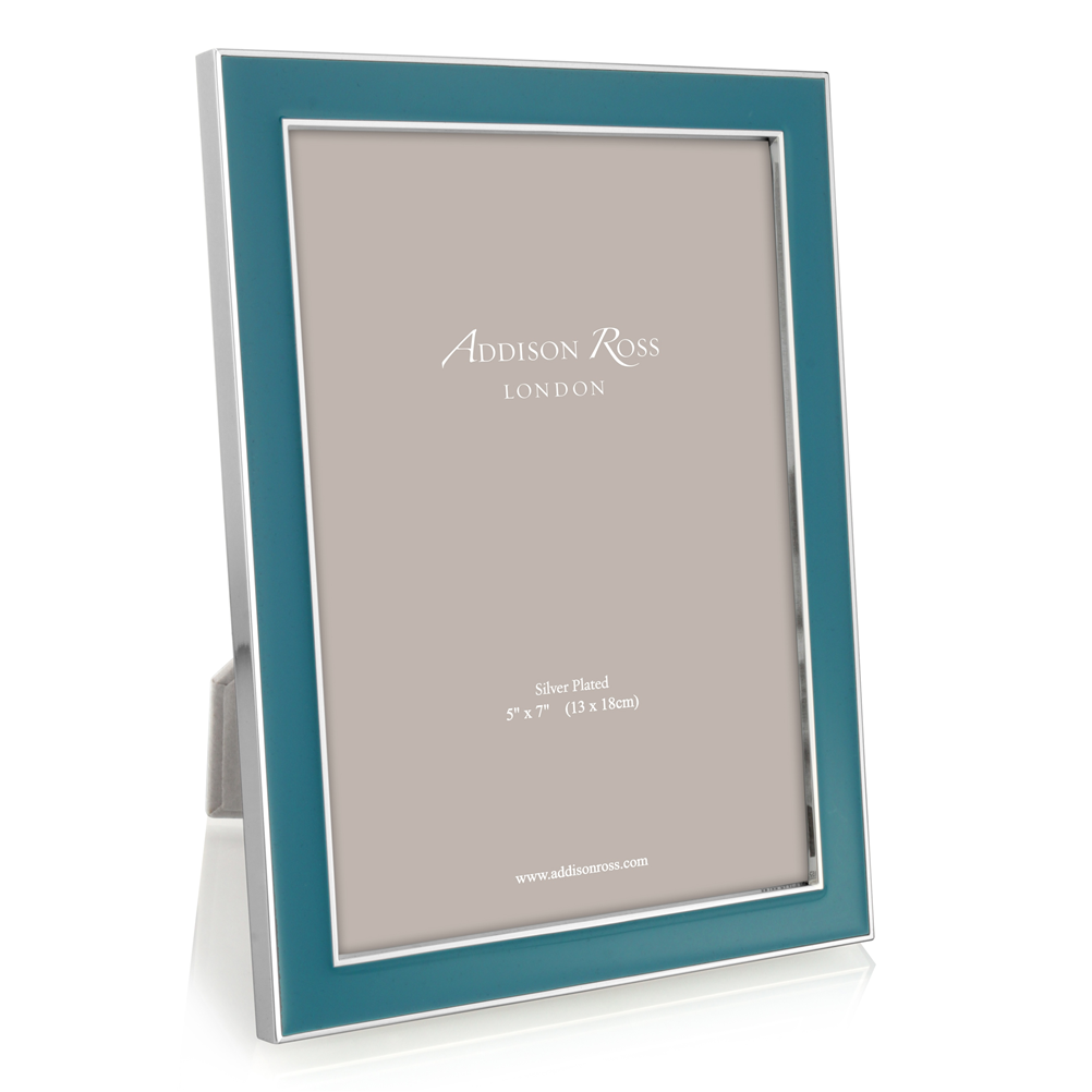 Fine silver trim adds the perfect finish to this vibrant teal enamel picture frame, only available at Addison Ross. Complementing both classic and modern interior decor, this elegant enamel frame suits black and white or full color photographs.
