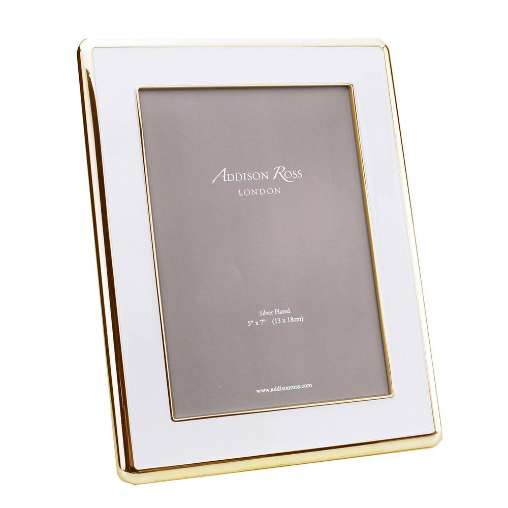 Our bestselling white enamel photo frame features a gently curved gold edge and a generous, wide enamel border. Pair with our gold trimmed, chiffon enamel picture frame to create an elegant gallery display.