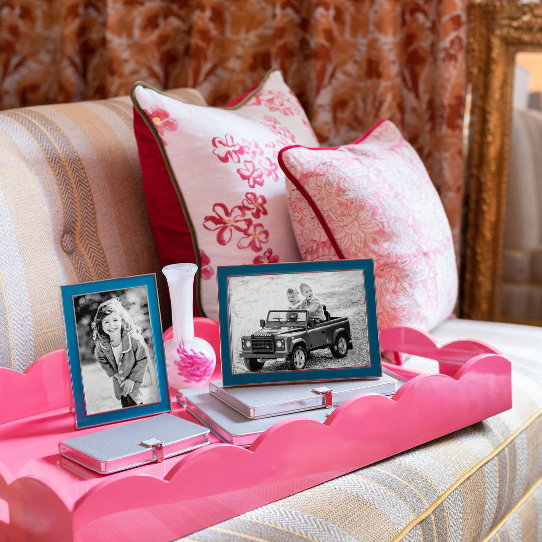 Designed to sit beautifully on any coffee table, ottoman, or sideboard this glossy, pink lacquer tray boasts a playful scalloped edge and deep straight sides. A must-have for any home this piece functions wonderfully as a drinks tray, dinner tray, or for enjoying breakfast in bed.
