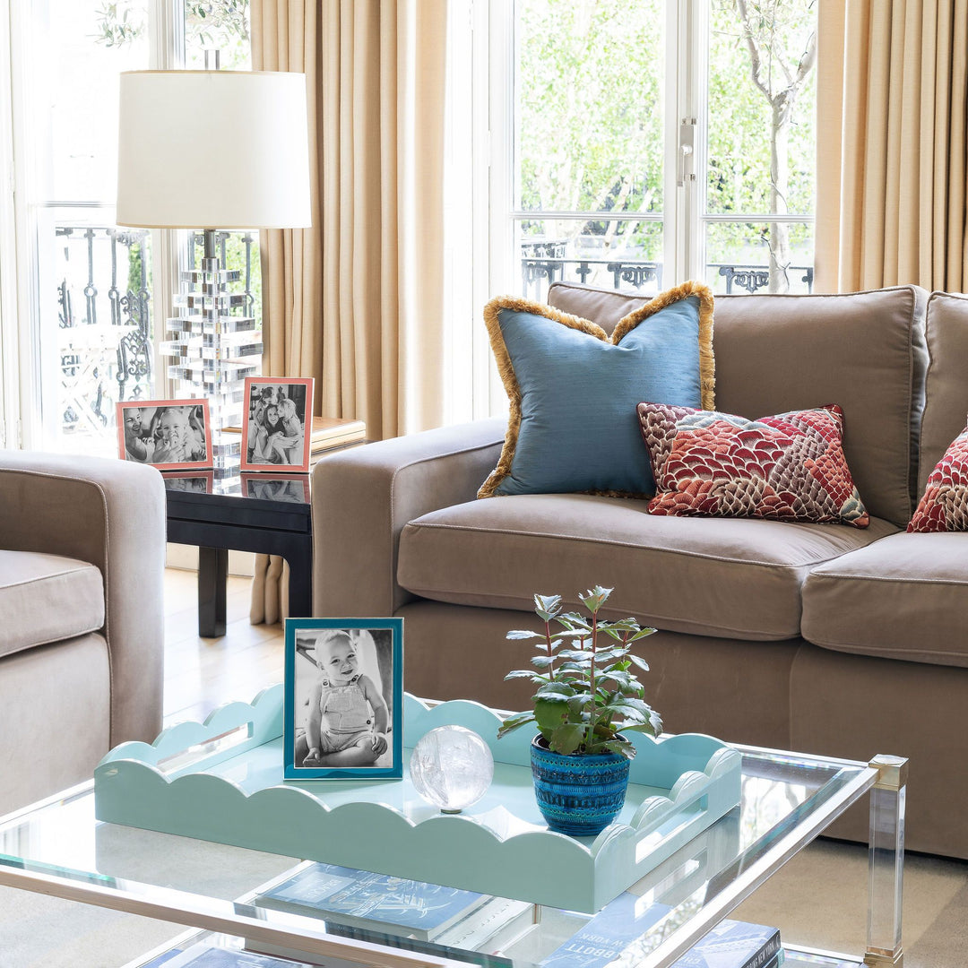 Designed to sit beautifully on any coffee table, ottoman, or sideboard this pretty, Eau De Nil lacquer tray boasts a playful scalloped edge and deep straight sides. A must-have for any home this piece functions wonderfully as a drinks tray, dinner tray, or for enjoying breakfast in bed.