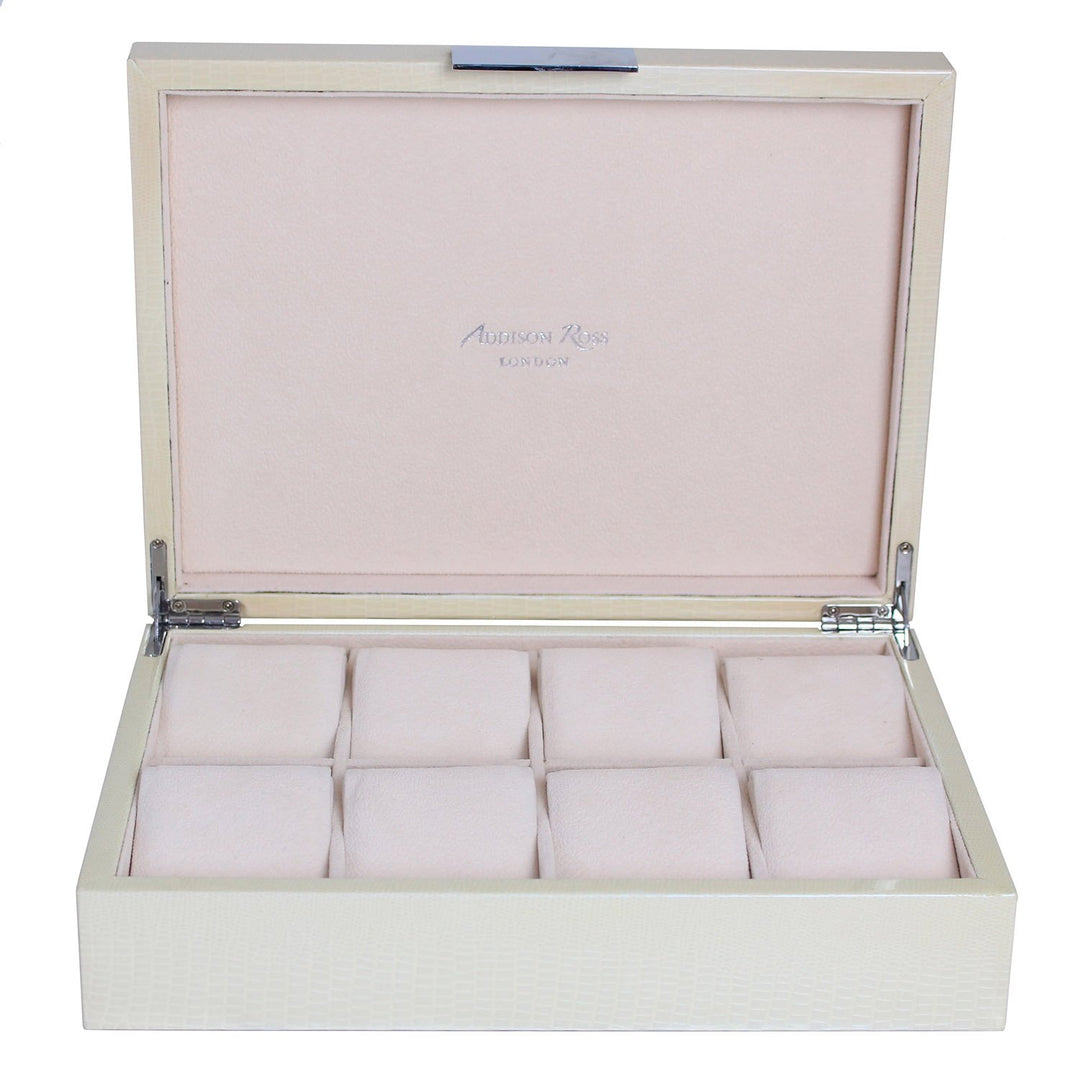 This stunning high gloss lacquered Box has a faux croc design in a shade of Vanilla cream, there is a hint of yellow in the colour and it is finished with a pearl sheen.